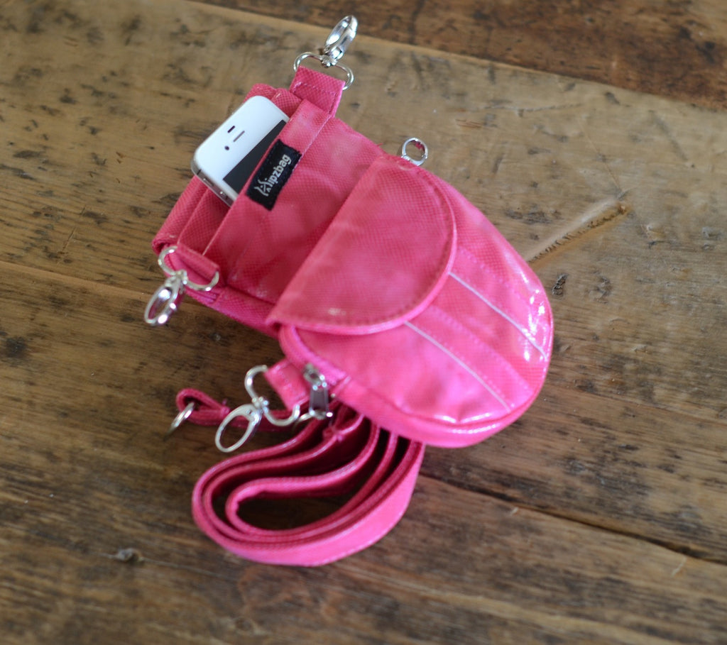 Cell phone slips into back pocket for ease of retrieval and putting back